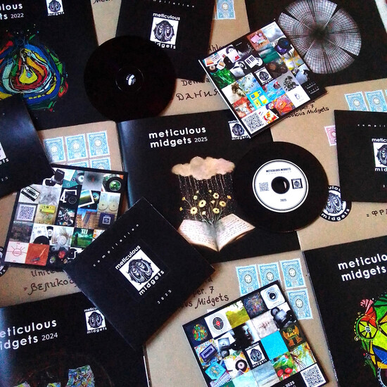 The magazine is issued in a limited edition, it can be issued by subscription and received by post to your address. Each magazine includes printed versions of releases published during the year with descriptions of the projects, albums and QR links for listening to them, exclusive materials, photographs, illustrations and reproductions of paintings that participated in our exhibitions, a CD compilation of the best tracks from the albums published on the Meticulous midgets label during the year. Here you can apply subscription for the next issue.